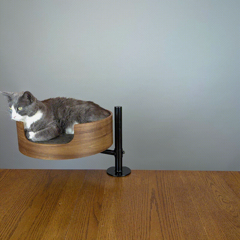 Desk Nest offers complete adaptability to suit your space, featuring a bed that can spin a full 360° around the post and adjusts vertically. With a base smaller than 4.5 inches (11 cm), it occupies minimal desk space.